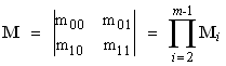 where m00, m01, m10 and m11 are the elements of the matrix, M