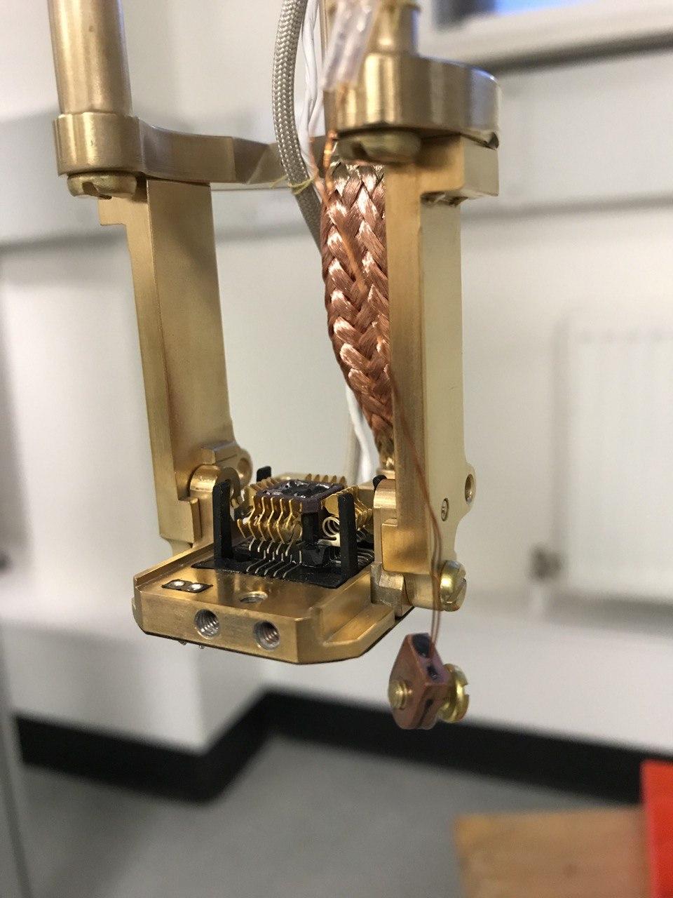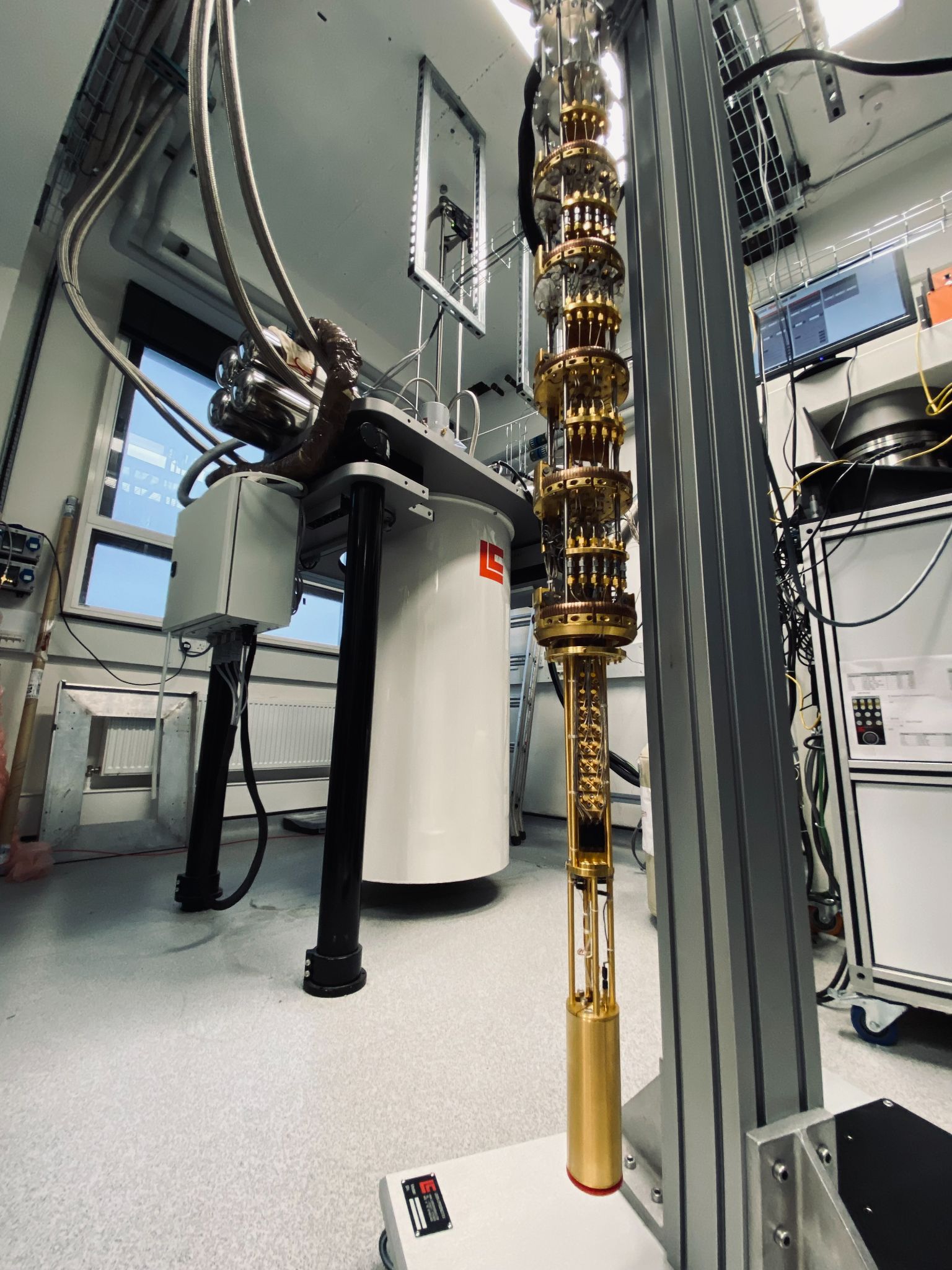The refrigerator (at the back) and the System probe (at the front)