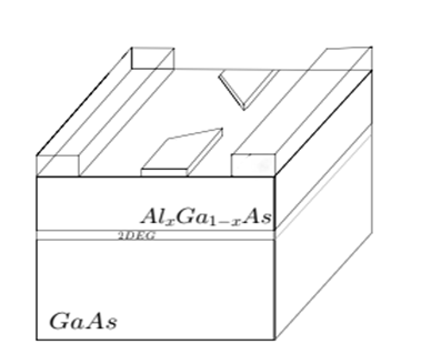 By applying voltage onto metallic gates which could be placed on top of the semiconductor heterostructure one can electrostatically define further-confinement on the two-dimensional plane of 2DEG