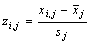 is the mean of the raw data responses in item j and sj is the standard deviation of the raw data responses in item j.
